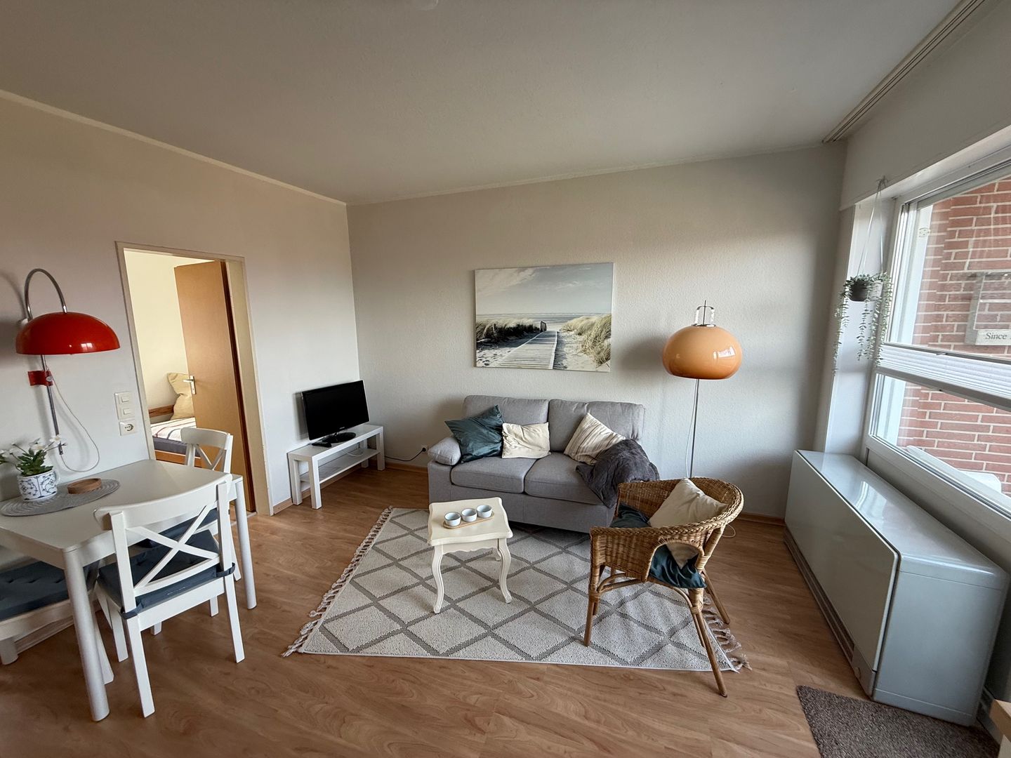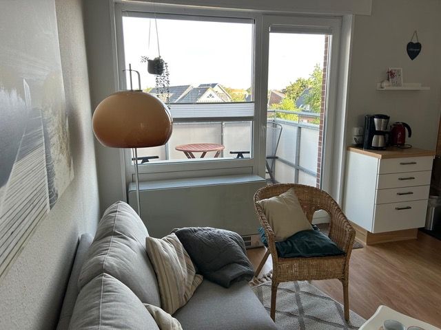 Der kleine Flur führt Sie in den Wohn- Essbereich mit offener Küche - abgehend die beiden Schlafzimmer und der schöne Balkon, wo Sie morgens schon die Sonne begrüßt, bietet weiterhin einen wunderbaren Blick über die Dächer Langeoogs.