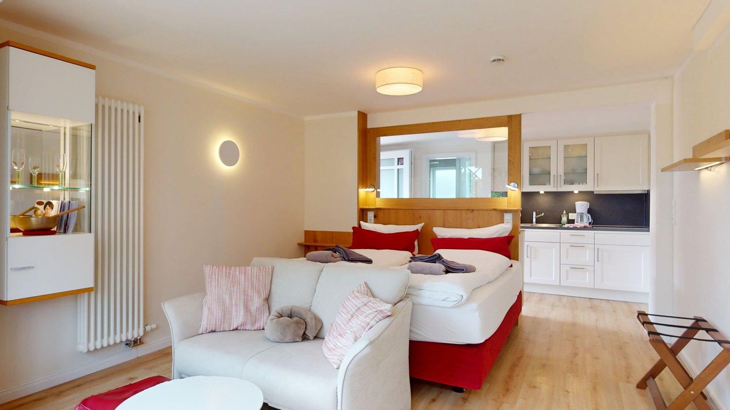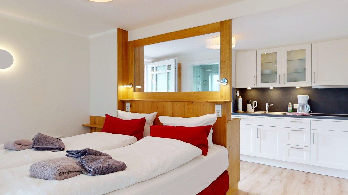 Das gemütliche Appartement bietet optisch abgetrennt eine kleine Küchenzeile, den Schlafbereich sowie den Sitzplatz mit Blick ins Grüne. Die sonnige Terrasse und der Garten gehört zu den Ausstattungsmerkmalen der hochwertigen Ferienwohnung. Die Liebe zum Detail, die Geräumigkeit und die komfortable, exklusive Ausstattung lassen Ihren Aufenthalt im Ostwind zu einem Wohlfühl-Erlebnis werden.