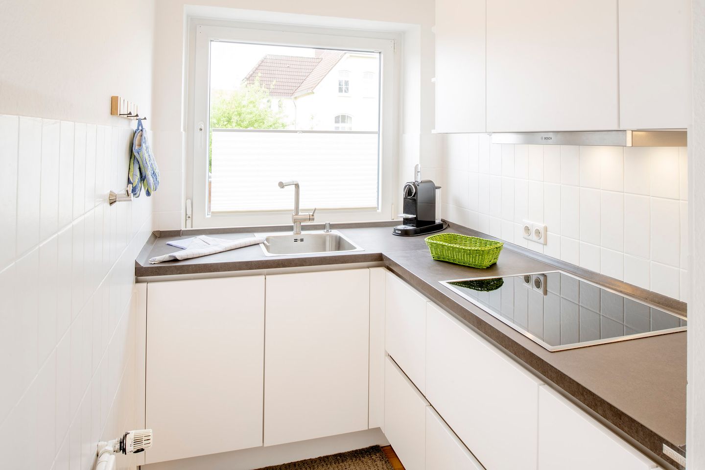 Die 54 m² große, ebenerdige Wohnung bietet Platz für bis zu vier Gäste. Die moderne Küche ist in den Wohnbereich integriert und mit hochwertigen Elektrogeräten ausgestattet: Induktionskochfeld, Backofen, Spülmaschine, Microwelle, Nespresso-Maschine sowie Kaffeemaschine, Wasserkocher und Toaster – ideal für Selbstversorger mit Anspruch.